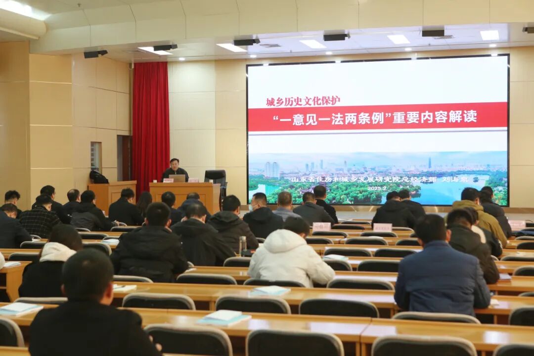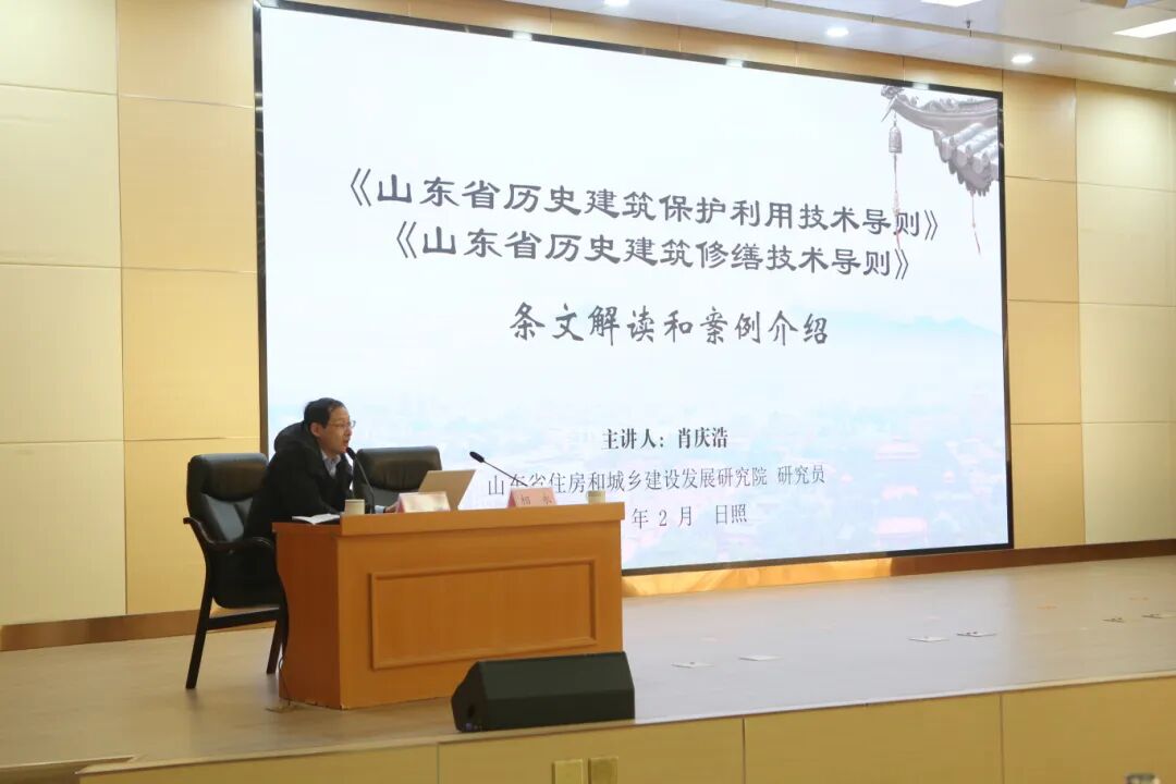 培训邀请了山东省住房和城乡建设发展研究院总经济师、历史文化保护研究所所长刘海泉,历史文化研究所副所长、工程技术应用研究员肖庆浩进行授课。培训重点解读了中共中央办公厅、国务院办公厅《关于在城乡建设中加强历史文化保护传承的意见》以及《中华人民共和国文物保护法》《历史文化名城名镇名村保护条例》《山东省历史文化名城名镇名村保护条例》,并结合正反面案例详细介绍了《山东省历史建筑保护利用技术导则》《山东省历史建筑修缮技术导则》。