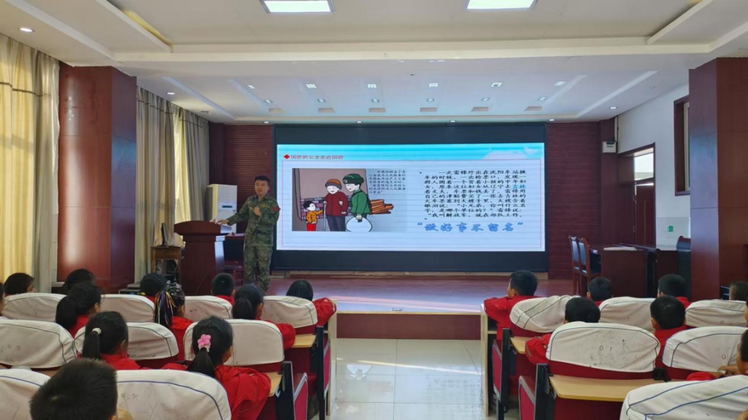 为提高学生的国防意识,加强国防教育,增强学生爱党、爱国、爱军的情感,树立国防观念,近日,莒县阎庄街道中心小学开展了“心怀国防志 共筑强国梦”国防教育活动。此次活动,邀请到了莒县阎庄街道党委康学刚老师,