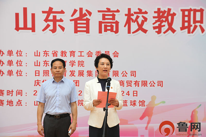 毛莉虹代表山东体育学院致欢迎辞。她指出,山东体育学院是我省体育高等教育高质量发展的重要力量,学校坚持以体为本、立德树人,以“对接需求、协同创新、集聚特色”为发展理念,以发展体育科技为突破点,主动探索地方专业体育院校服务体育强国建设的新路径。学校建设了国家足球学院、国家篮球学院、中国举重学院三大“国字号”学院,创建“训科医教培”五位一体的国家奥运会备战训练基地,打造了运动监控大数据中心、智慧化科学健身指导系统,以及奥运科技服务保障车等科技服务平台;创办了全国体育科技创新大赛、全国体育院校篮球联赛(SCBA)两个国家级品牌赛事;创建了山东省科学健身指导中心、山东省校园足球发展研究中心暨校园足球训练总营、山东省体育产业研究院、山东体育政策研究中心等20多个科技创新服务平台。她强调,“校长杯”全省高校教职工乒乓球比赛,是促进全省高教系统职工身心健康、增进友谊促进交流、推动全省高等教育事业发展的一个品牌平台。同时,她向省教育工会、各兄弟单位和日照市有关部门对承办工作的大力支持和帮助表示感谢。向参加赛事的全体领导、运动员、教练裁判员和工作人员表示欢迎。学校也将全力以赴做好办赛的各项组织和服务保障工作,确保比赛顺利进行。